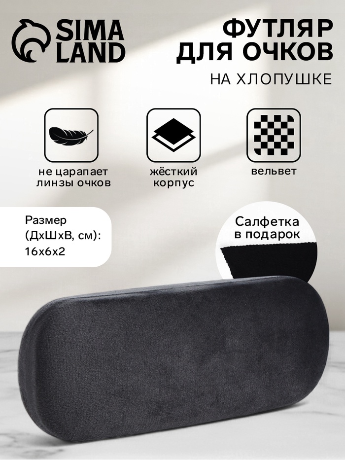 Футляр для очков на хлопушке, однотонный, размер 16×6×2 см, серый — Характеристики