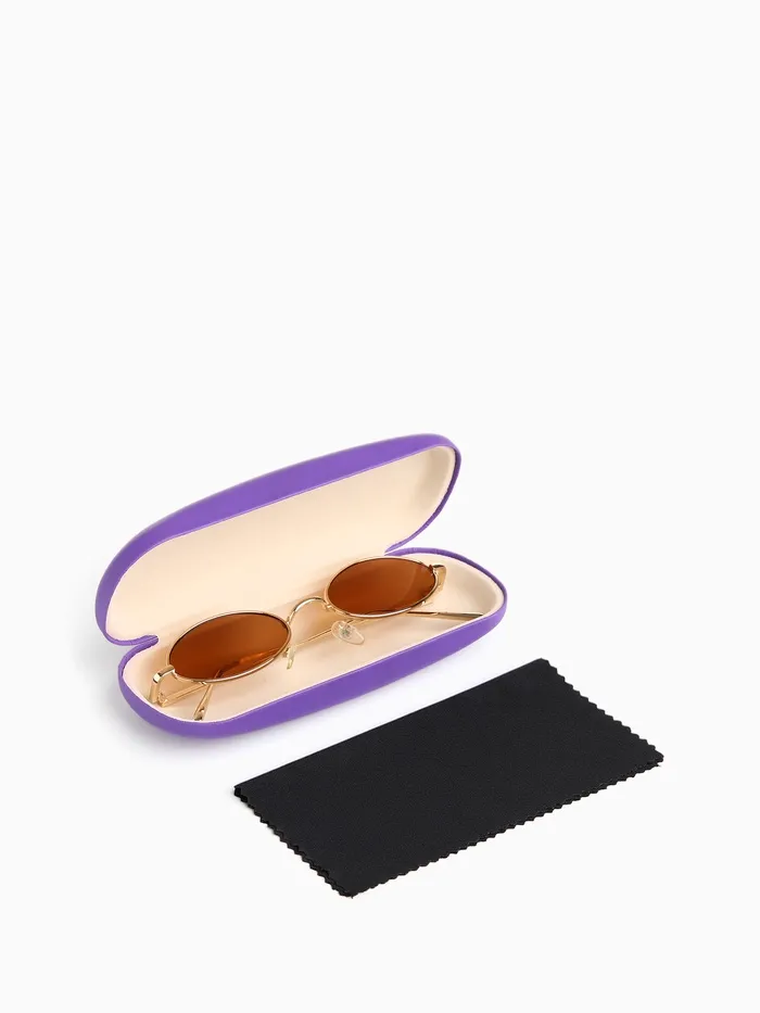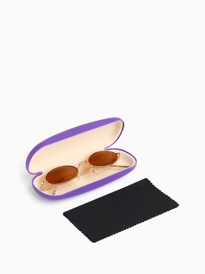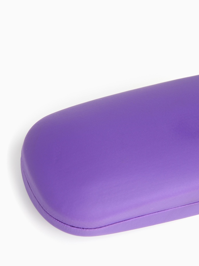 Футляр для очков привлекает внимание своим фиолетовым цветом и лаконичным дизайном. Изготовленный из искусственной кожи с жестким корпусом, он обеспечивает надежную защиту ваших очков. Удобная застежка-хлопушка добавляет легкости в использовании. Длина 16 см и ширина 6 см делают его универсальным и подходящим для большинства очков.