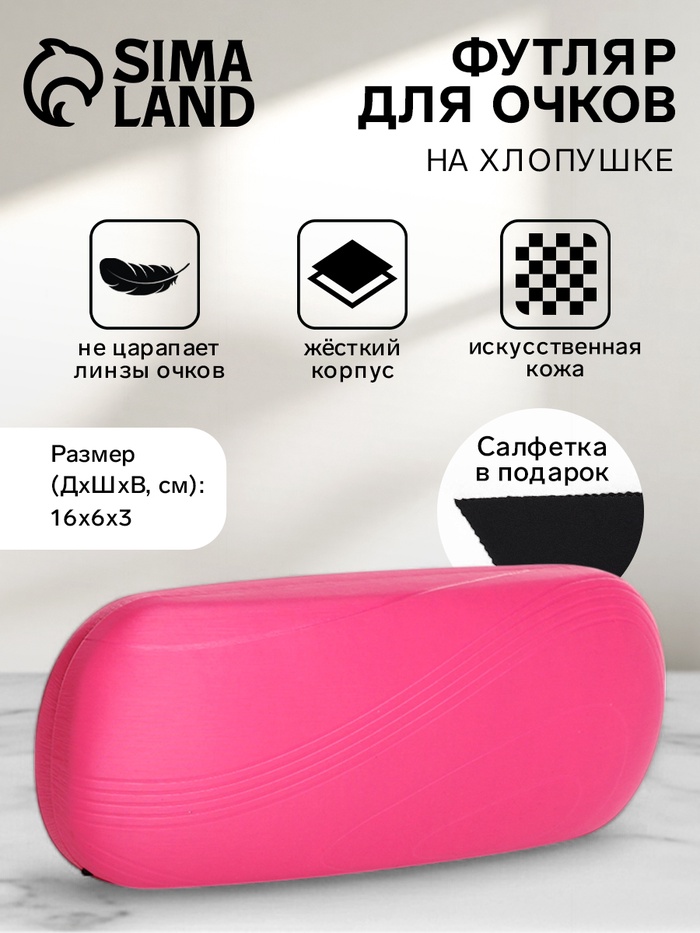 Футляр для очков на хлопушке, однотонный, размер 16×6×3 см, розовый — Характеристики