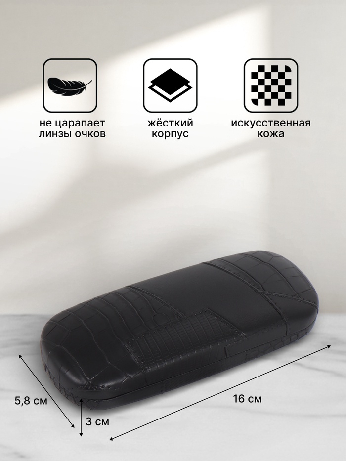 - Узкие размеры 16×5,8×3 см подходят для моделей с тонкой оправой.