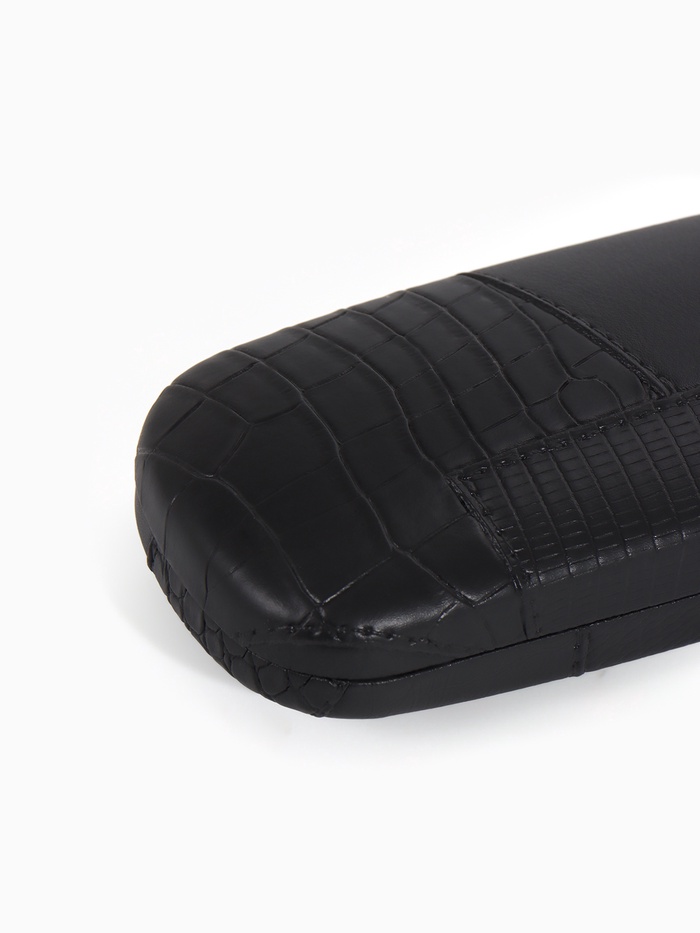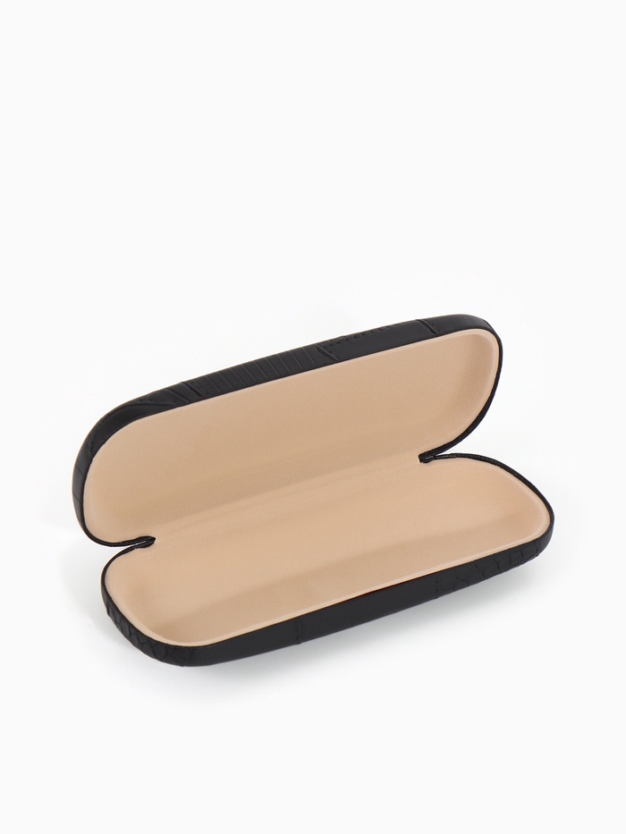 Этот чёрный футляр для очков с застёжкой-хлопушкой обеспечивает надёжную защиту при компактных размерах. Узкий профиль удобен для переноски в кармане или небольшой сумке.
