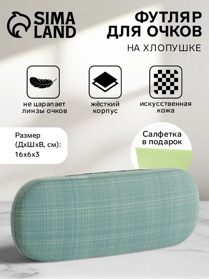 Футляр для очков на хлопушке, размер 16×6×3 см, зелёный — Характеристики
