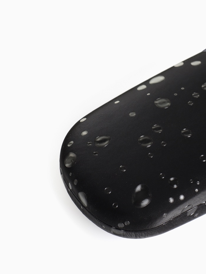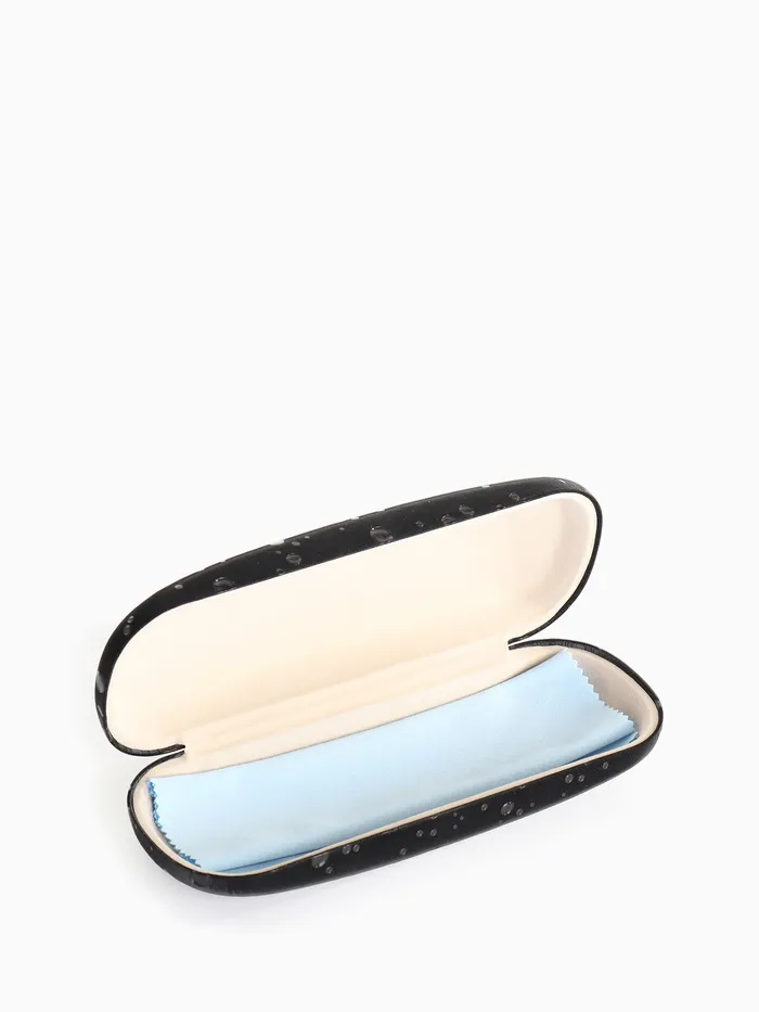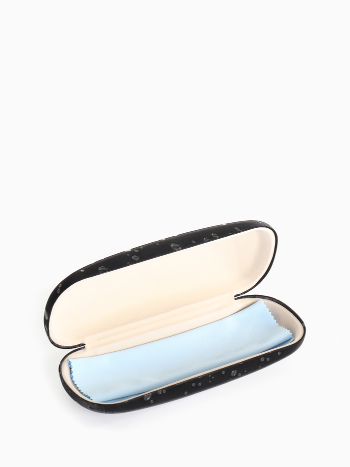 Изысканный футляр для очков на хлопушке, выполненный из искусственной кожи, обладает жёстким корпусом и длиной в 16 см. Он станет вашим надёжным спутником, сохраняя ваши очки в безопасности благодаря практичному дизайну. Стильный чёрный цвет в сочетании с узором «Капли воды» делает его идеальным подарком для женщины к празднику 8 Марта.