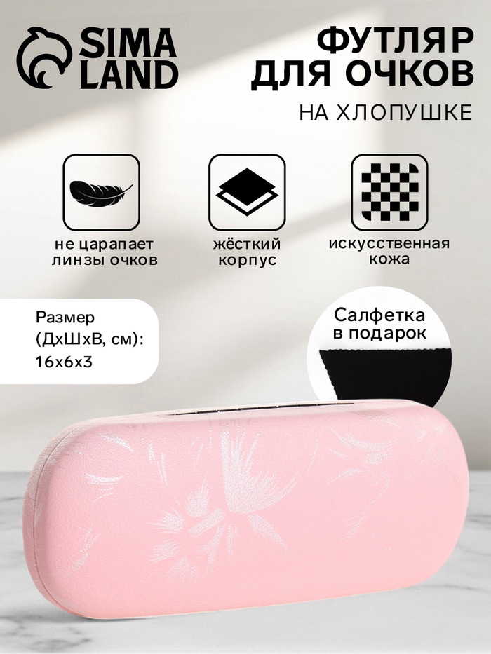 Футляр для очков на хлопушке, с цветочным принтом, размер 16×6×3 см, розовый — Характеристики