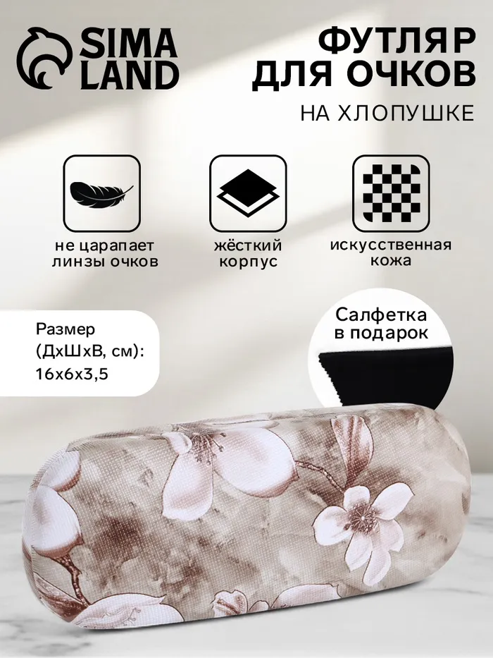 Футляр для очков на хлопушке, с цветочным принтом, размер 16×6×3.5 см, коричневый — Характеристики