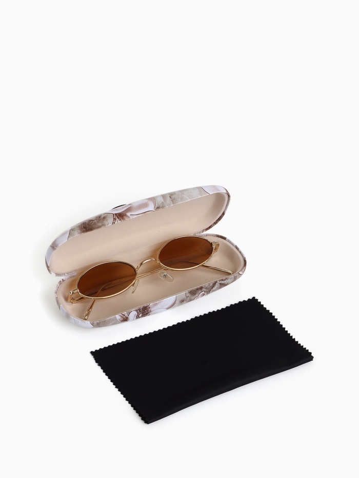 Элегантный и практичный футляр для очков с застежкой - хлопушка. Идеальный аксессуар для современной женщины, которая ценит стиль и функциональность. Изготовлен из искусственной кожи, выполнен в универсальном коричневом цвете с оригинальным принтом «Нероли», подчеркивающим изысканность и индивидуальность. Жесткий корпус надежно защищает очки, обеспечивая их сохранность. Подходит как подарок ко Дню 8 Марта. Длина футляра — 16 см.