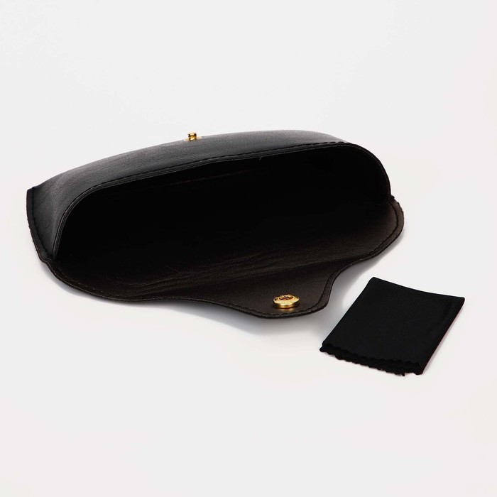 Стильный и универсальный черный футляр для очков с кнопочной застежкой. Подходит как мужчинам, так и женщинам, обеспечивая надежную защиту ваших очков в любых условиях. Выполнен из искусственной кожи, футляр сочетает в себе элегантность и практичность, делая его идеальным спутником для повседневного использования.