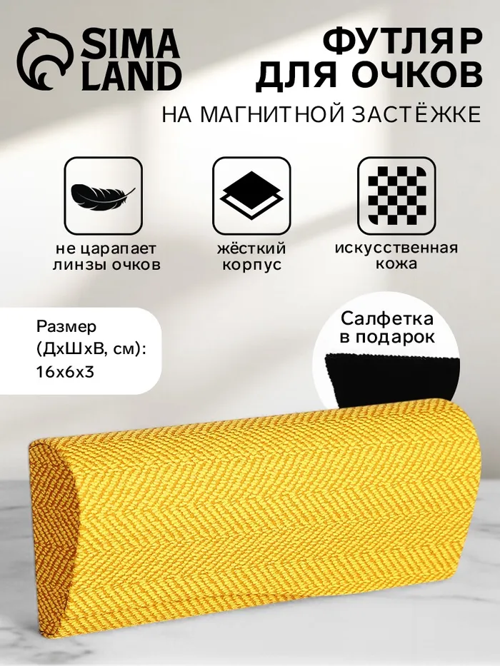 Футляр для очков на магните, длина 16 см, цвет жёлтый — Характеристики