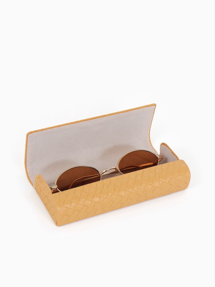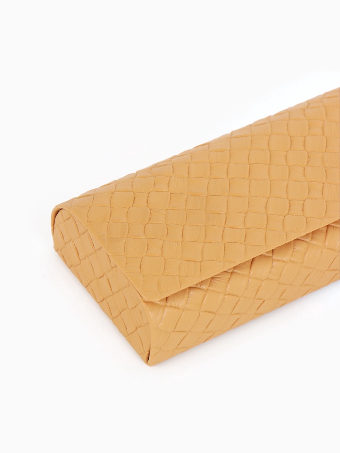 Этот бежевый футляр для очков с магнитной застёжкой сочетает нежный оттенок с практичной защитой. Тёплый цвет подходит для светлых сумок и летних аксессуаров.