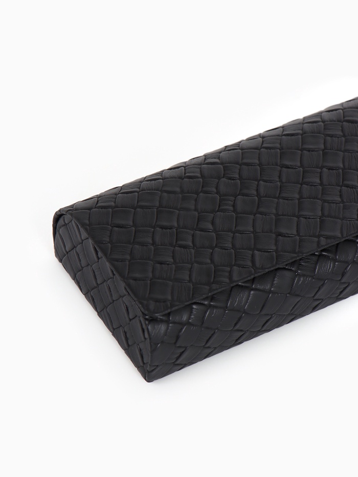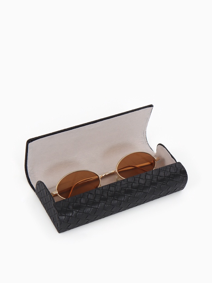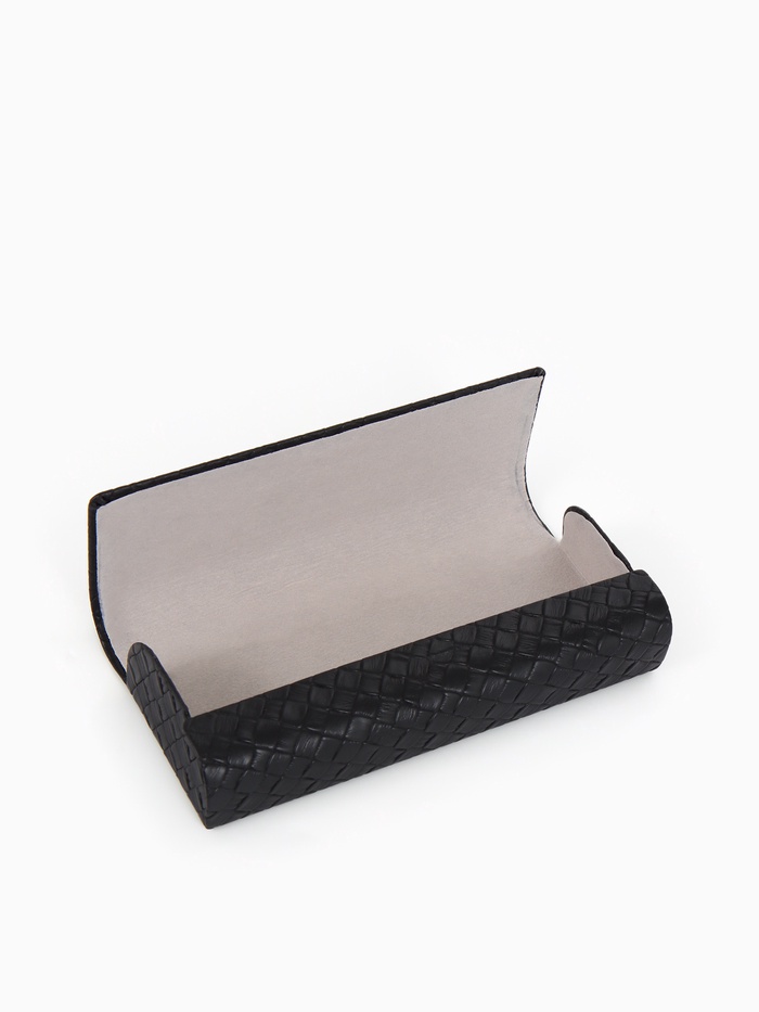 Этот чёрный футляр для очков с магнитной застёжкой сочетает минималистичный дизайн с удобством использования. Магнит обеспечивает бесшумное и плавное закрытие.