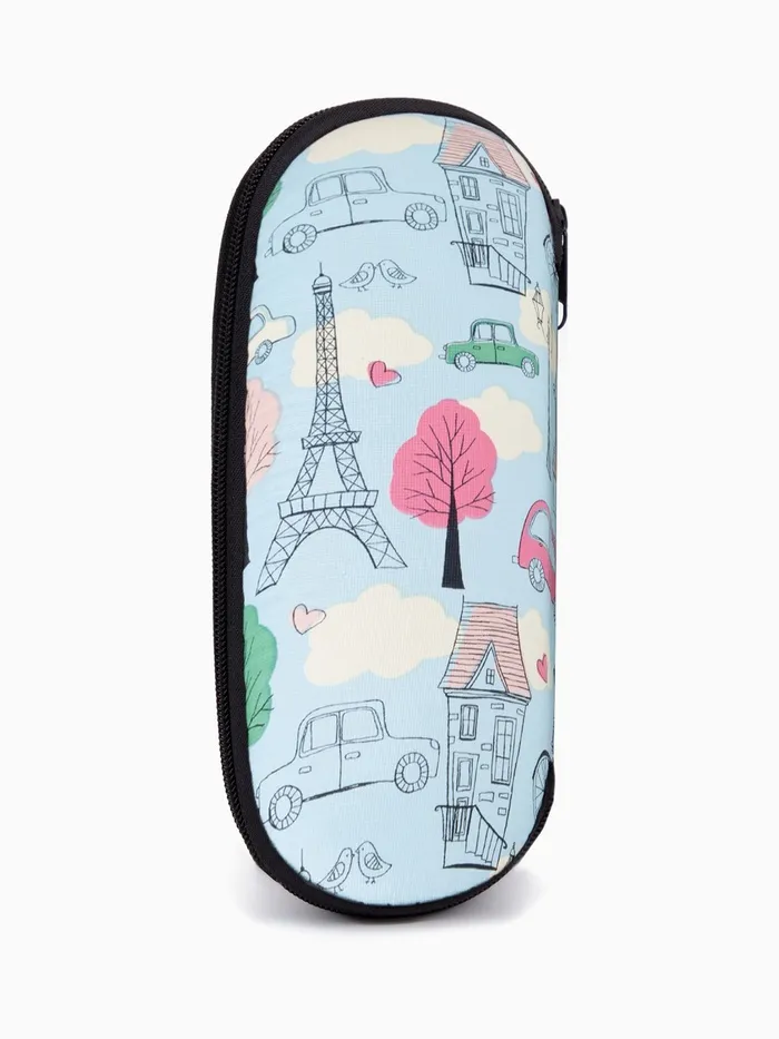 Футляр для очков на молнии «Весенний Париж», длина 17 см, голубой — Характеристики
