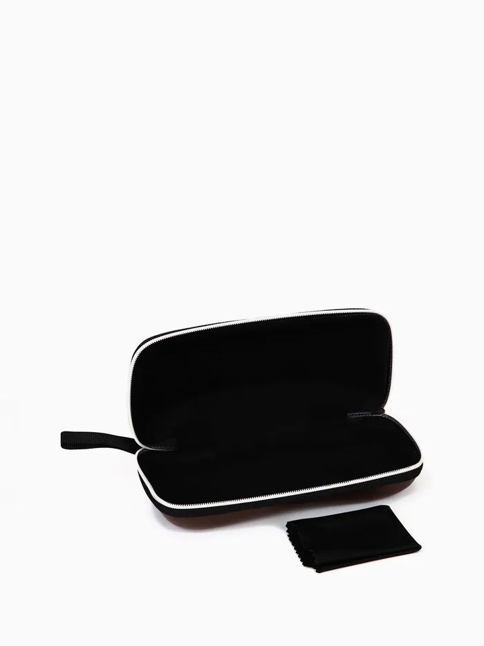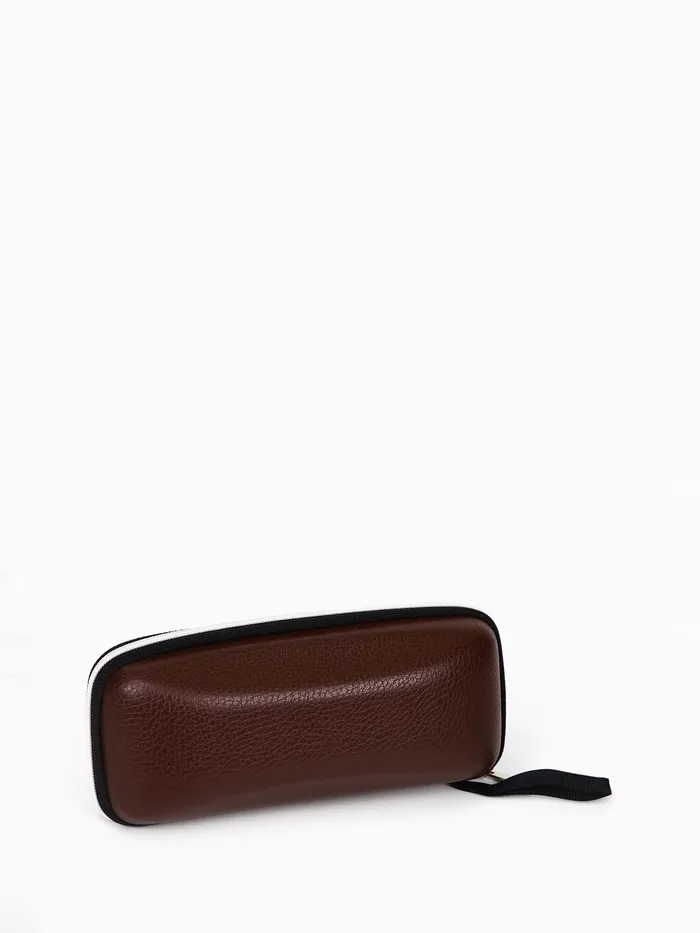 Футляр для очков создан для сохранности ваших ценных аксессуаров. Выполненный из искусственной кожи, этот элегантный чехол в коричневом цвете станет надежным спутником как мужчин, так и женщин. Жёсткий корпус и удобная застёжка на молнии обеспечивают максимальную безопасность. С длиной 16,8 см и шириной 8 см, он подойдёт для большинства моделей очков.