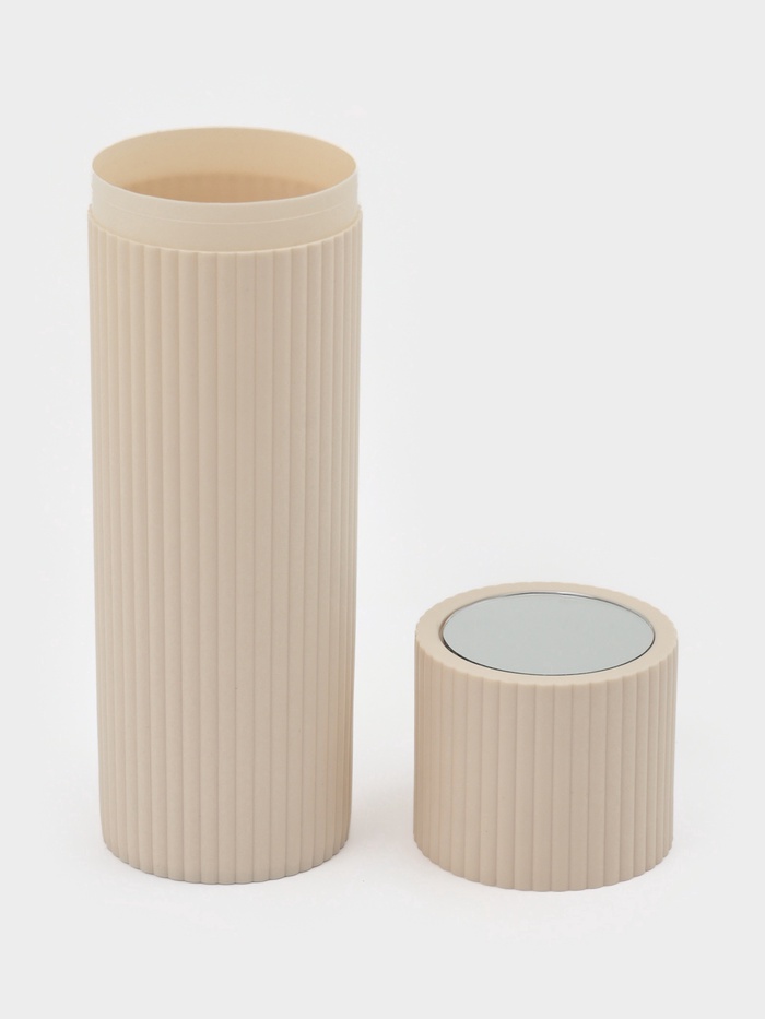 Футляр для зубной пасты и щётки с зеркалом — круглый бежевый органайзер из полипропилена, созданный для утреннего ритуала без спешки. Он объединяет всё необходимое: место для пасты, щётки и мини-зеркало для финального взгляда. Компактный, но практичный — идеален для ванной, офиса или путешествий, где каждая деталь на своём месте.