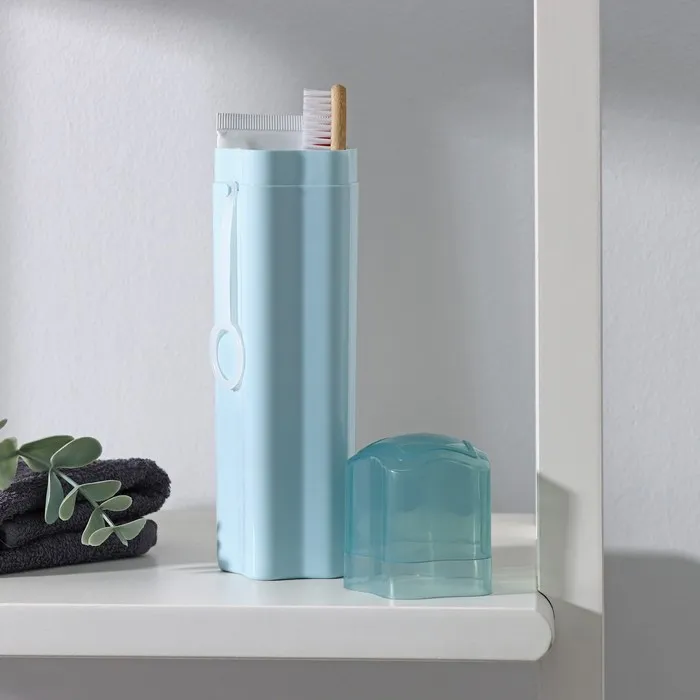 - Он удобен и практичен: крышка открывается лёгким нажатием на корпус, вместит зубную пасту, щётку и даже зубную нить.