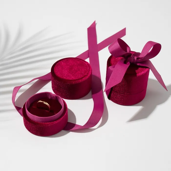 Футляр из корейского бархата под серьги/кольцо «Сюрприз» 5.8×5.3 см, бордовый — Характеристики