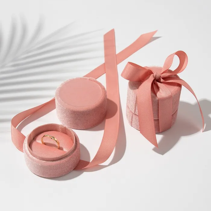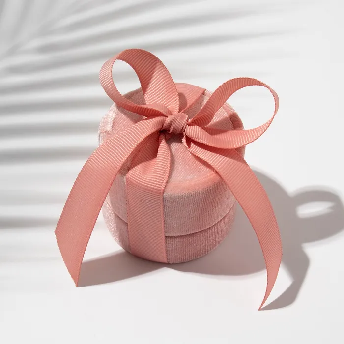 Футляр из корейского бархата под серьги/кольцо «Сюрприз» 5,8×5,3 см, цвет светло-розовый — Характеристики