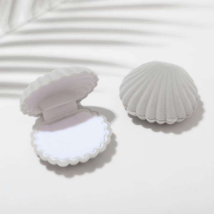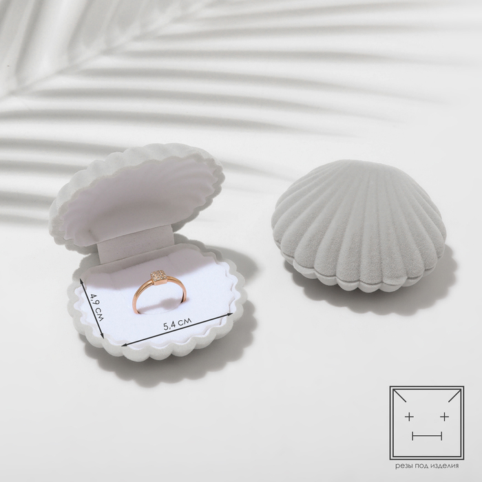 Футляр под кольцо, серьги «Ракушка», бархатный, 6×5.5 см, серый — Характеристики