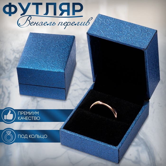 Выбирайте футляр под кольцо «Вензель перелив» синий, чтобы ваш подарок был не только красивым, но и надежно упакованным, создавая незабываемое впечатление и радость у получателя.