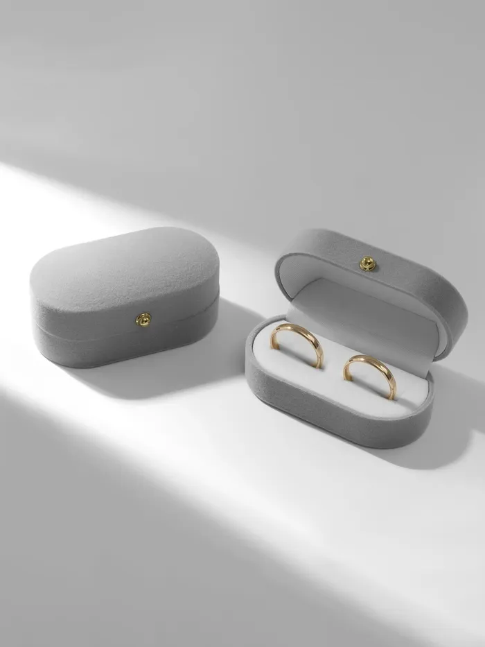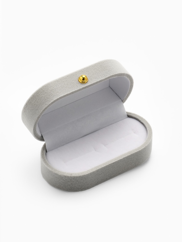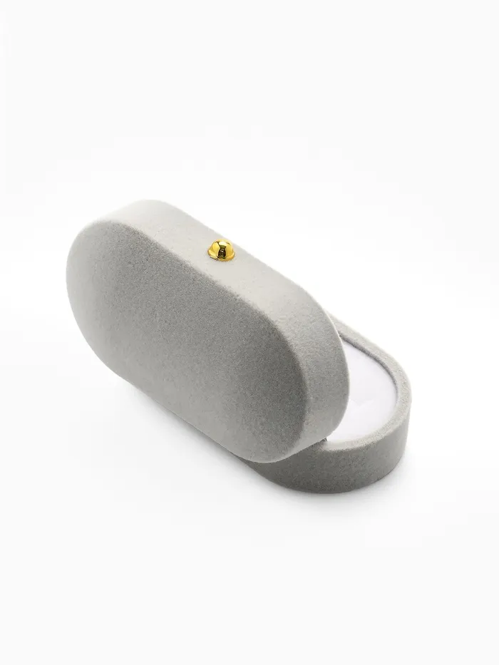 Размеры 7,5×4×3 см идеально подходят для размещения серег или кольца, создавая безопасное и удобное пространство для хранения украшений. Серый цвет футляра добавляет ему универсальности и лаконичности, а белая вставка внутри подчеркивает изысканность содержимого, создавая контраст и акцент на украшении.
