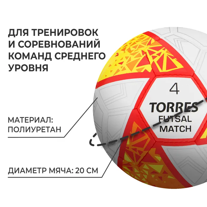 Размер 4 подходит для мини-футбольных игр, соревнований и тренировок.
