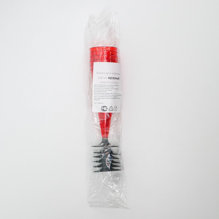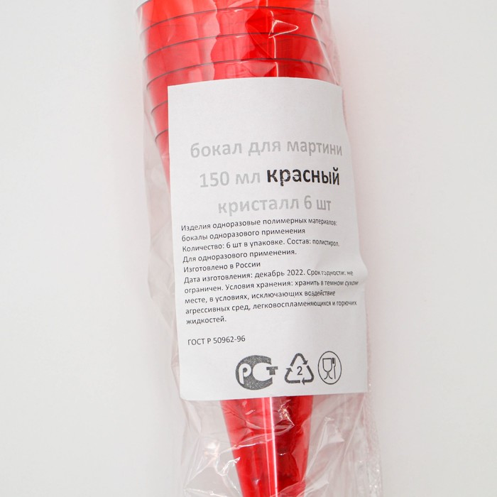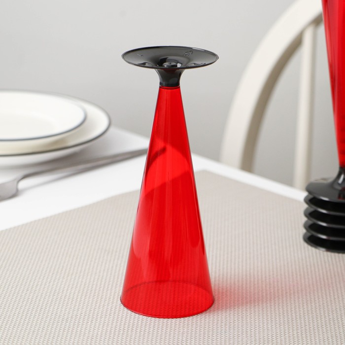 Фужер одноразовый «Конус», 150-180 мл, пластик, красный с чёрной ножкой — Характеристики