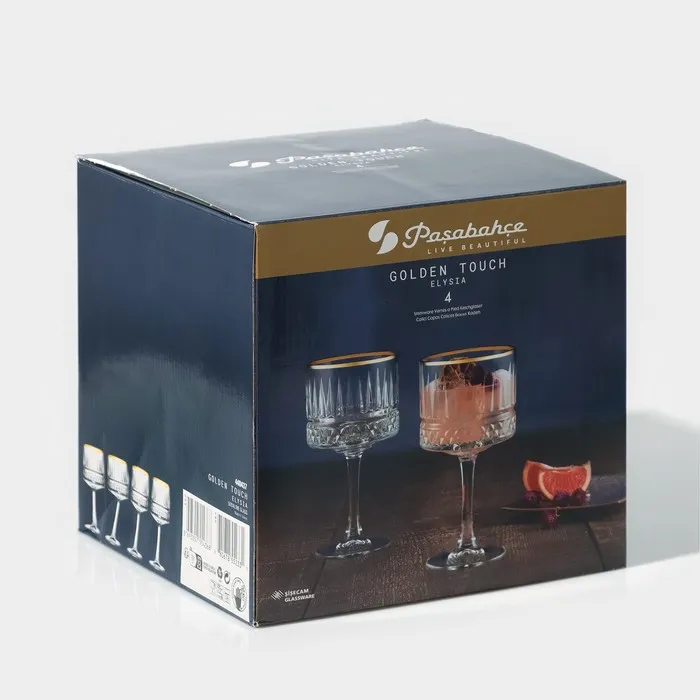 Каждый из четырех фужеров в наборе объёмом 500 мл красиво оформлен с рельефной текстурой и элегантной золотой отводкой, способствуя созданию изысканной атмосферы на вашем столе.Эти фужеры — это не просто посуды, это настоящие украшения любого праздника.