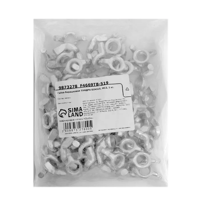 Гайка-барашек ТУНДРА, с округлыми лепестками, DIN 315, оцинкованная, М12, 1 кг — Характеристики