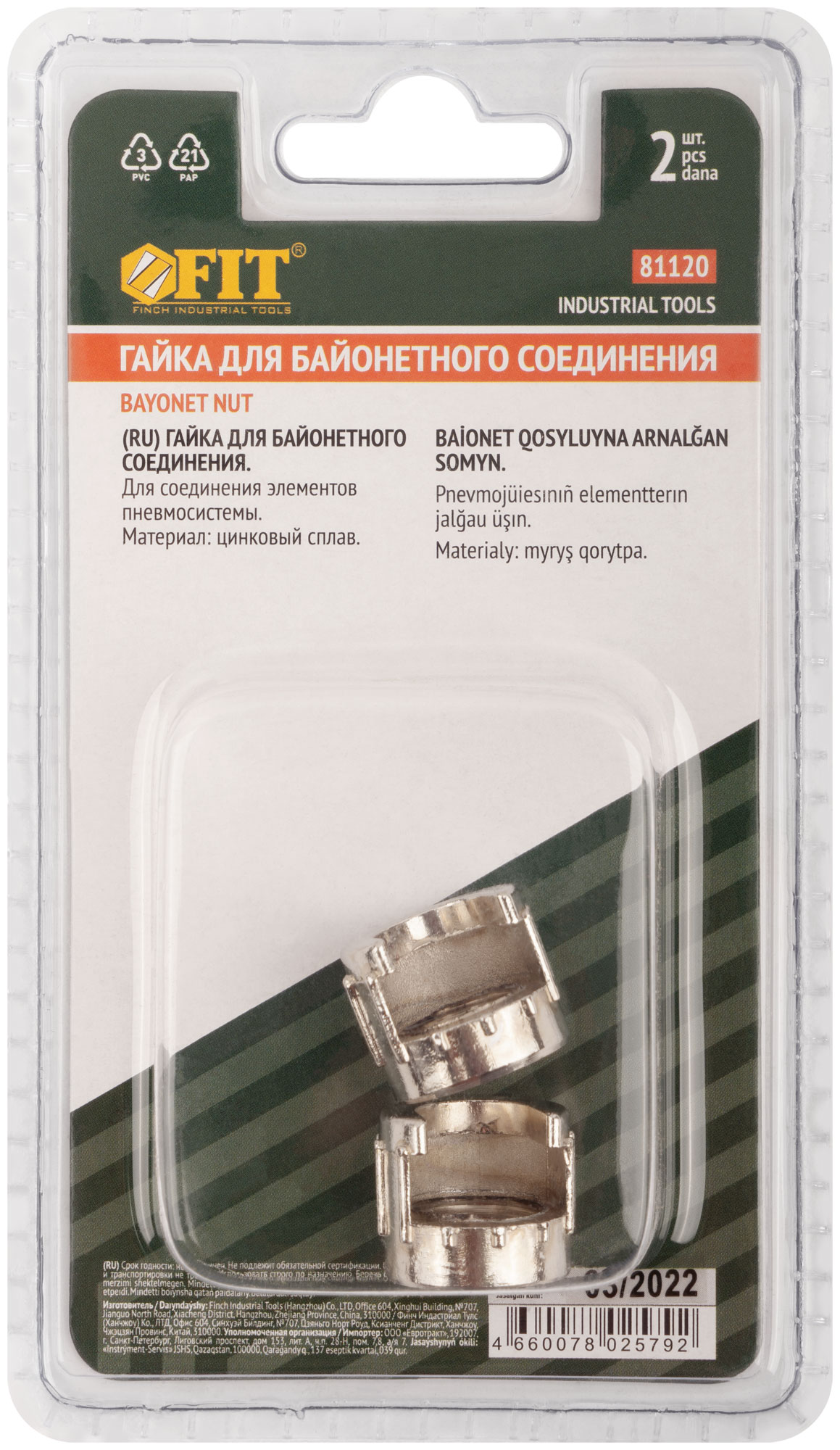 Выберите гайки для соединения "байонет" от FIT, чтобы обеспечить надежное и быстрое соединение в ваших пневматических системах.