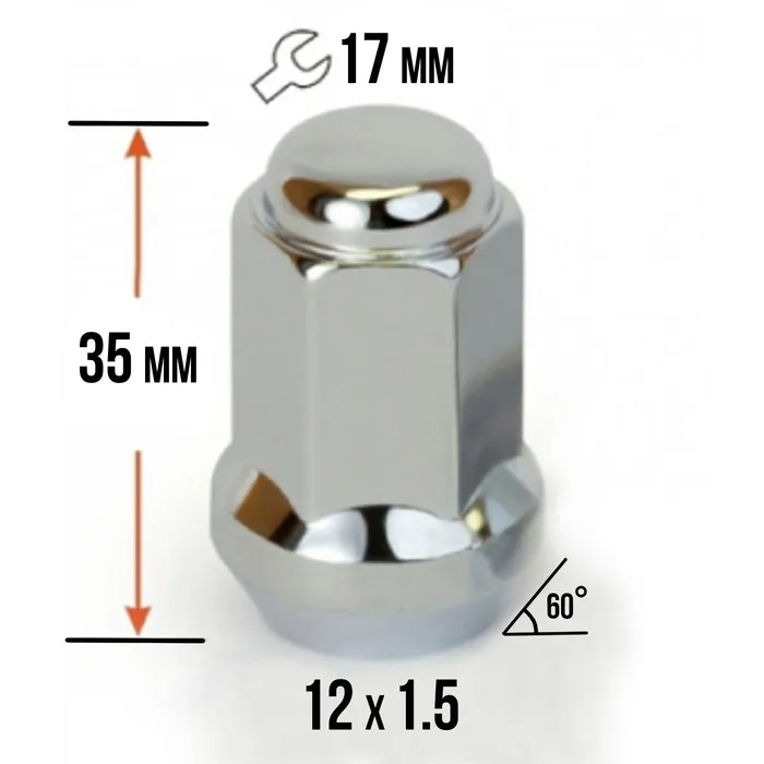 Гайка колесная под ключ 17 мм, 12×1.5 мм, конус, закрытая, хром, фасовка 20 шт — Характеристики
