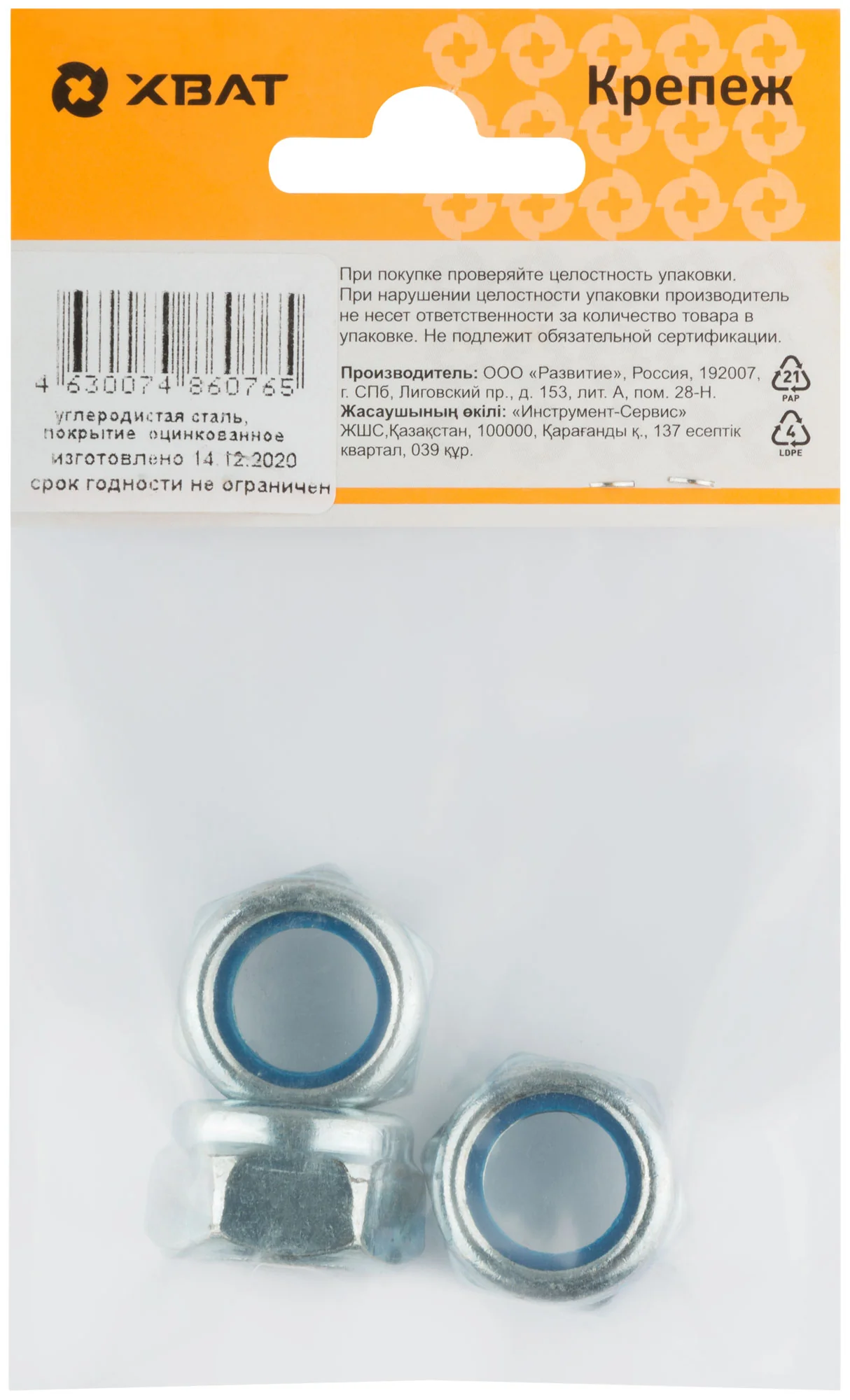 Гайка выполнена из прочной оцинкованной стали и оснащена нейлоновым кольцом. Это кольцо не только предотвращает откручивание, но и обеспечивает герметичность резьбового соединения, исключая необходимость использования дополнительных стопорных шайб или гроверов.