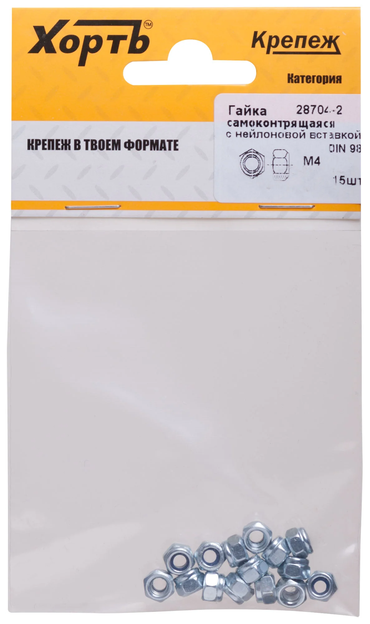 Гайка самоконтрящаяся с нейлоновой вставкой М4 ( фасовка 15 шт.) DIN 985