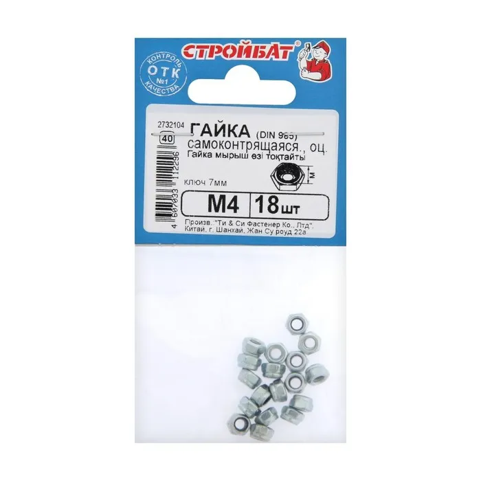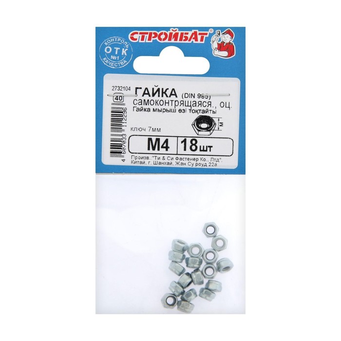 Гайка СТРОЙБАТ, самоконтрящаяся, DIN 985, класс прочности 6, оцинкованная, M4, 18 шт — Характеристики
