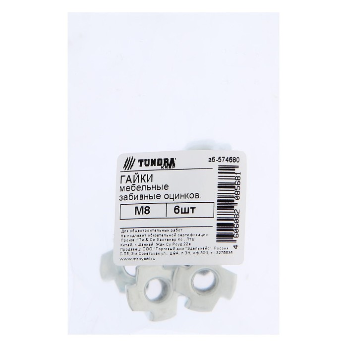 Гайка ТУНДРА, мебельная, забивная, DIN 1624, оцинкованная, М8, 6 шт. — Характеристики