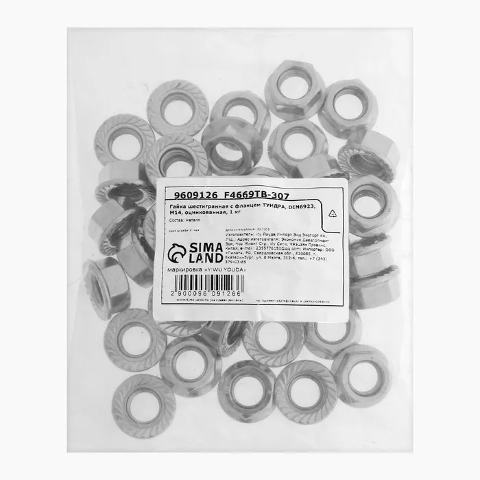 Гайка ТУНДРА, с фланцем, DIN 6923, класс прочности 8, оцинкованная, М14, 1 кг — Характеристики