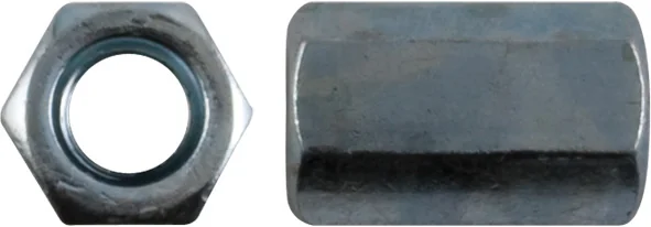 Изготовлена из конструкционной оцинкованной стали, что обеспечивает устойчивость к коррозии и механическим повреждениям. Длина гайки равна примерно трем её диаметрам, что обеспечивает прочное соединение.