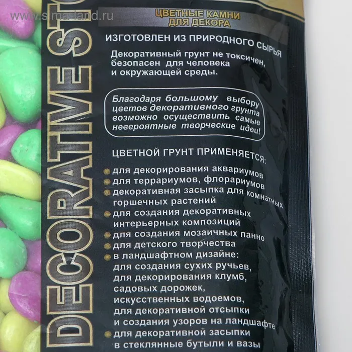 Декоративный грунт изготовлен из природного сырья, не токсичен, безопасен для человека и окружающей среды.