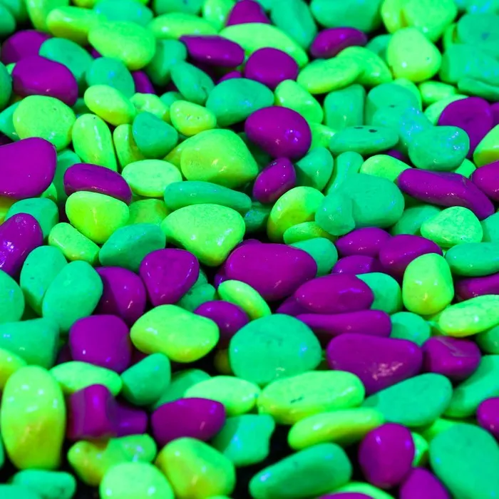 Галька декоративная, флуоресцентная микс: лимонный, зеленый, пурпурный, 800 г, фр.8-12 мм — Характеристики