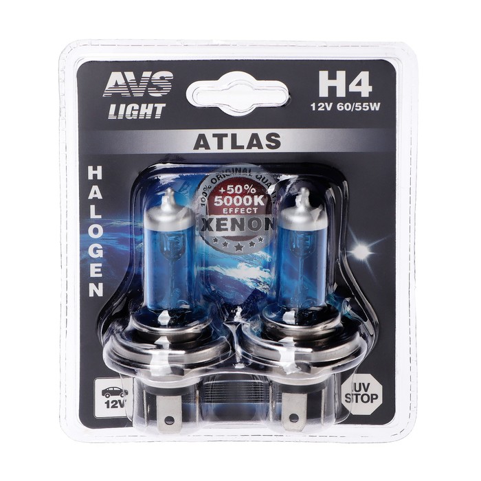 Галогенная лампа AVS ATLAS, H4, 12 В, 60/55 Вт, набор 2 шт. — Характеристики