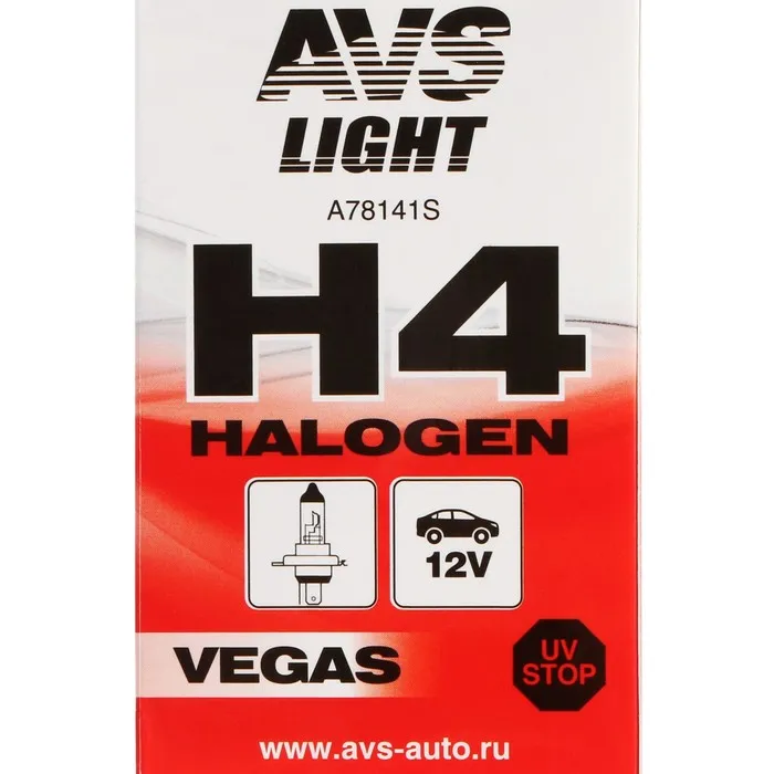 Снизьте риск при управлении транспортным средством с помощью галогенной лампы AVS Vegas с цоколем H4, которая предназначена для организации системы ближнего и дальнего света.