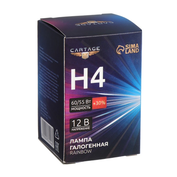 Галогенная лампа Cartage Rainbow Н4, P43t, 12 В, 60/55 Вт +30% — Характеристики