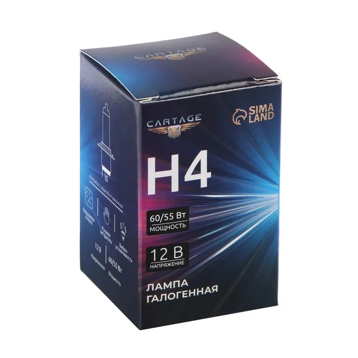 Галогенная лампа для авто Cartage, H4, P43t, 23 В, 60/55 Вт — Характеристики