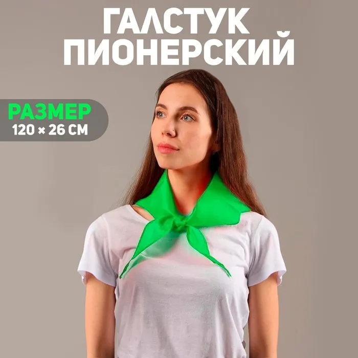Галстук пионерский, 100% п/э, зелёный, 120×26 см — Характеристики