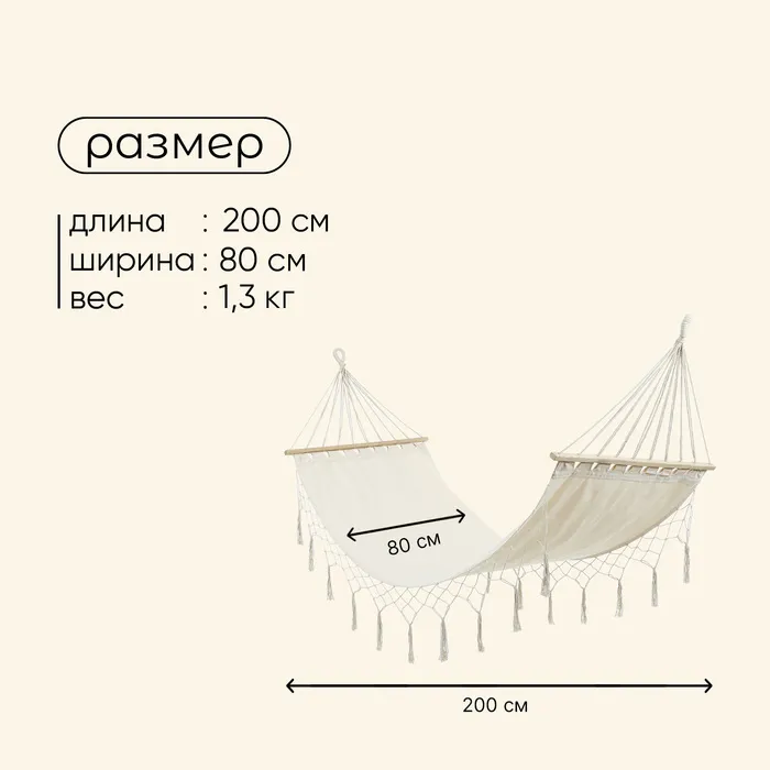 • Размер гамака - 200 х 80 см.