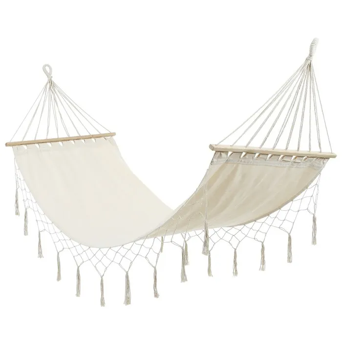 • Модель оснащена двумя деревянными перекладинами, которые предотвращают скручивание гамака.