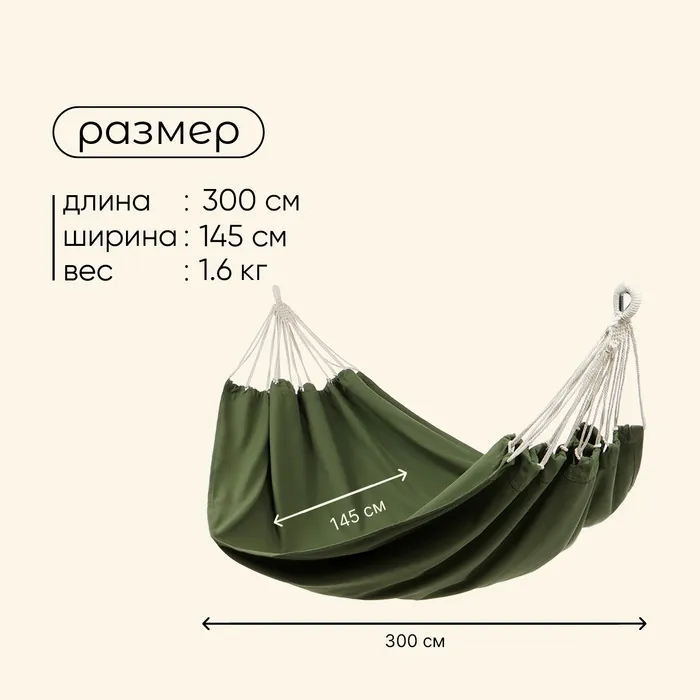 - Размер гамака с верёвками: 300 х 145 см.