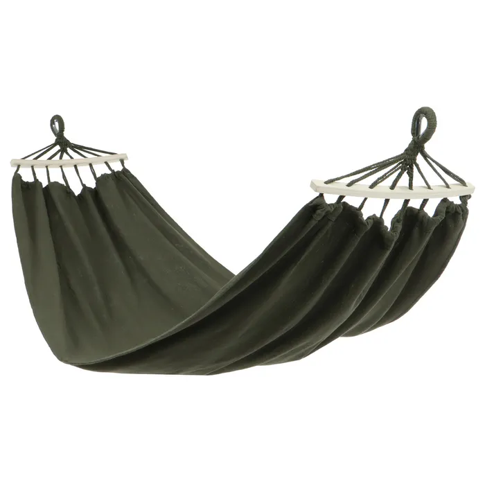 Износостойкий брезентовый гамак подойдёт для качания, сна или отдыха на природе. Благодаря компактному размеру и простой конструкции он удобен в хранении, транспортировке и установке.