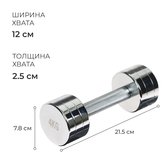 Гантель хромированная ONLYTOP, 4 кг — Характеристики