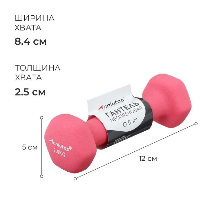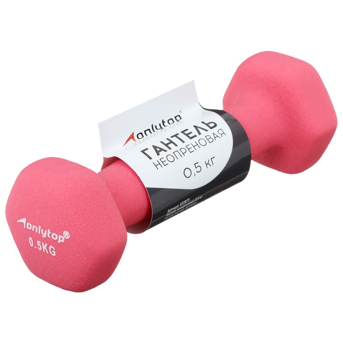 Гантель неопреновая ONLYTOP, 0,5 кг, цвет розовый — Характеристики