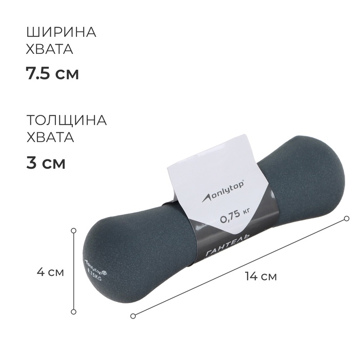 Гантель неопреновая ONLYTOP, 0,75 кг, цвет серый — Характеристики
