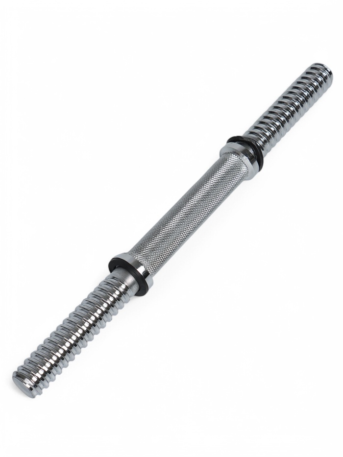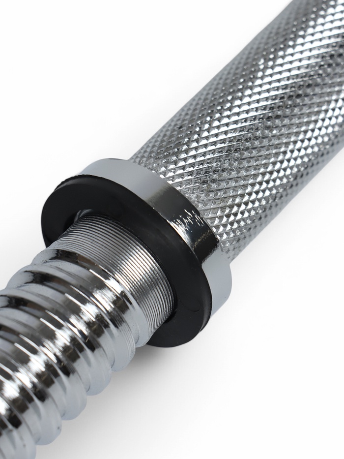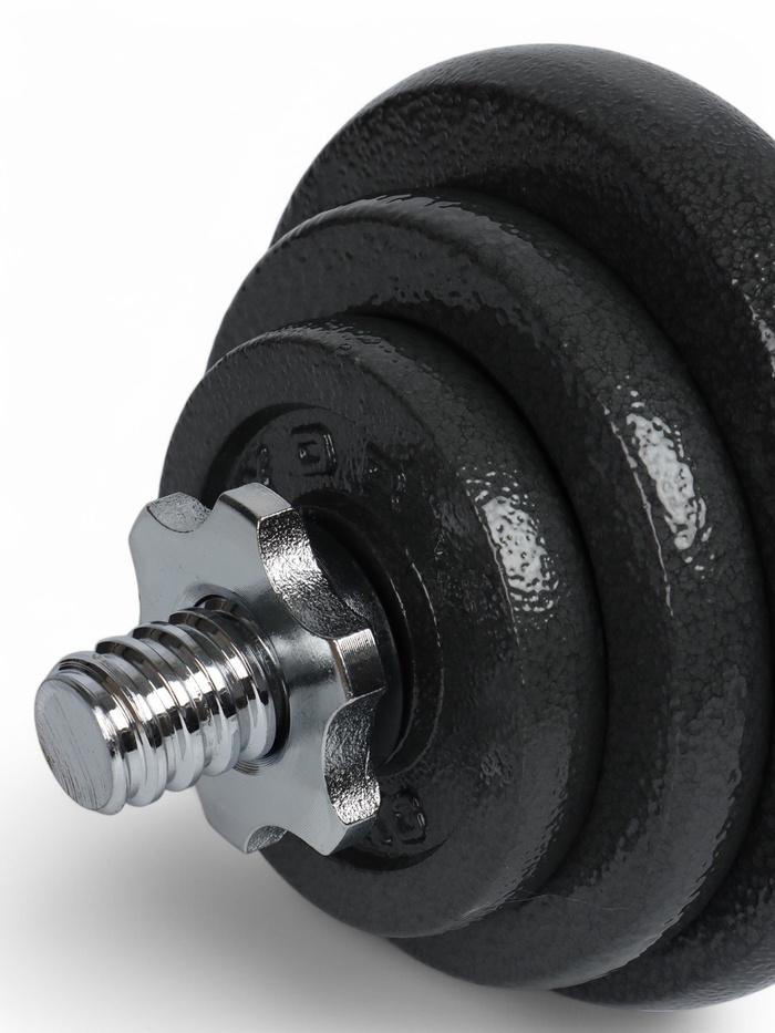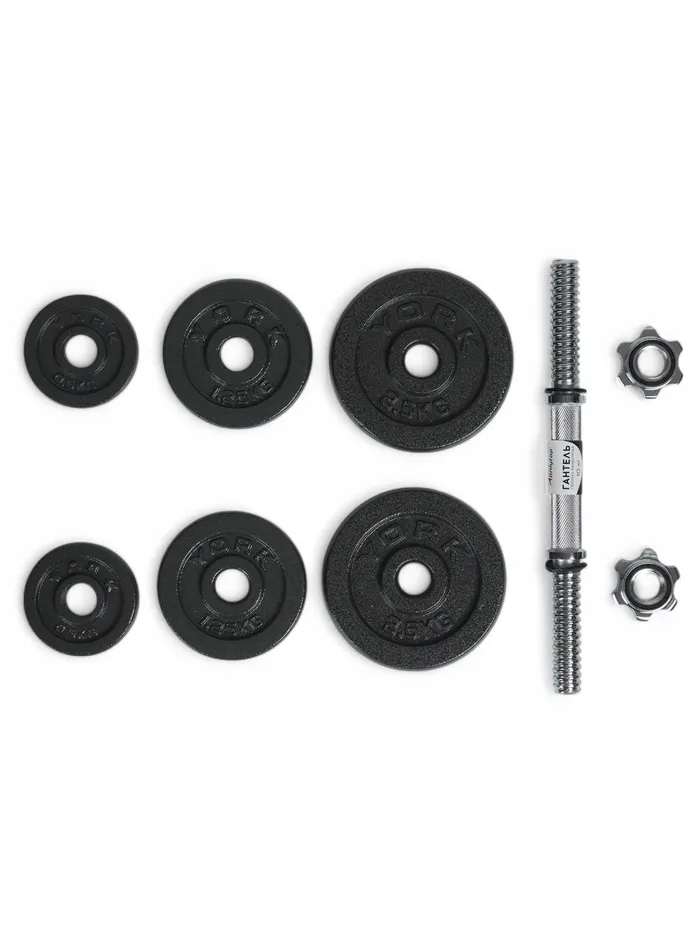 Гантель подходит для тренировок в спортивном зале и дома. Рифлёная ручка не проскальзывает во время захвата. Установленные по краям держатели надёжно фиксируют надетые диски.